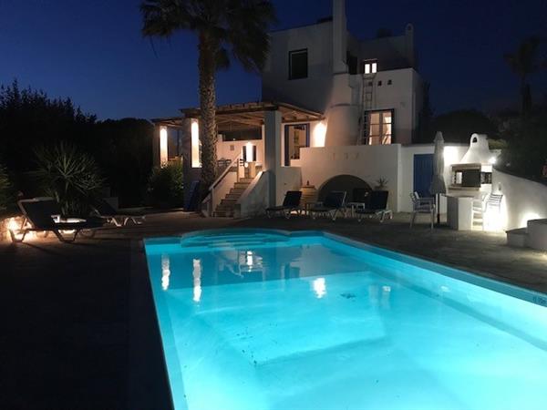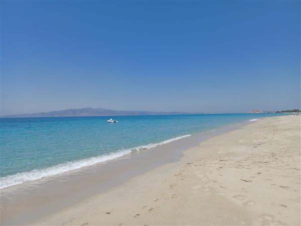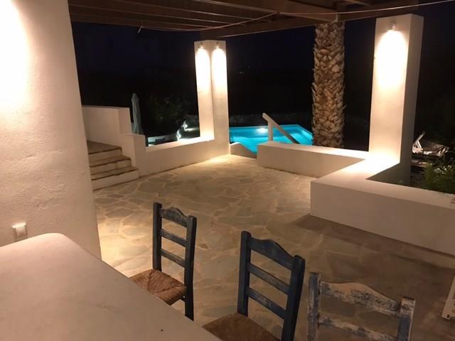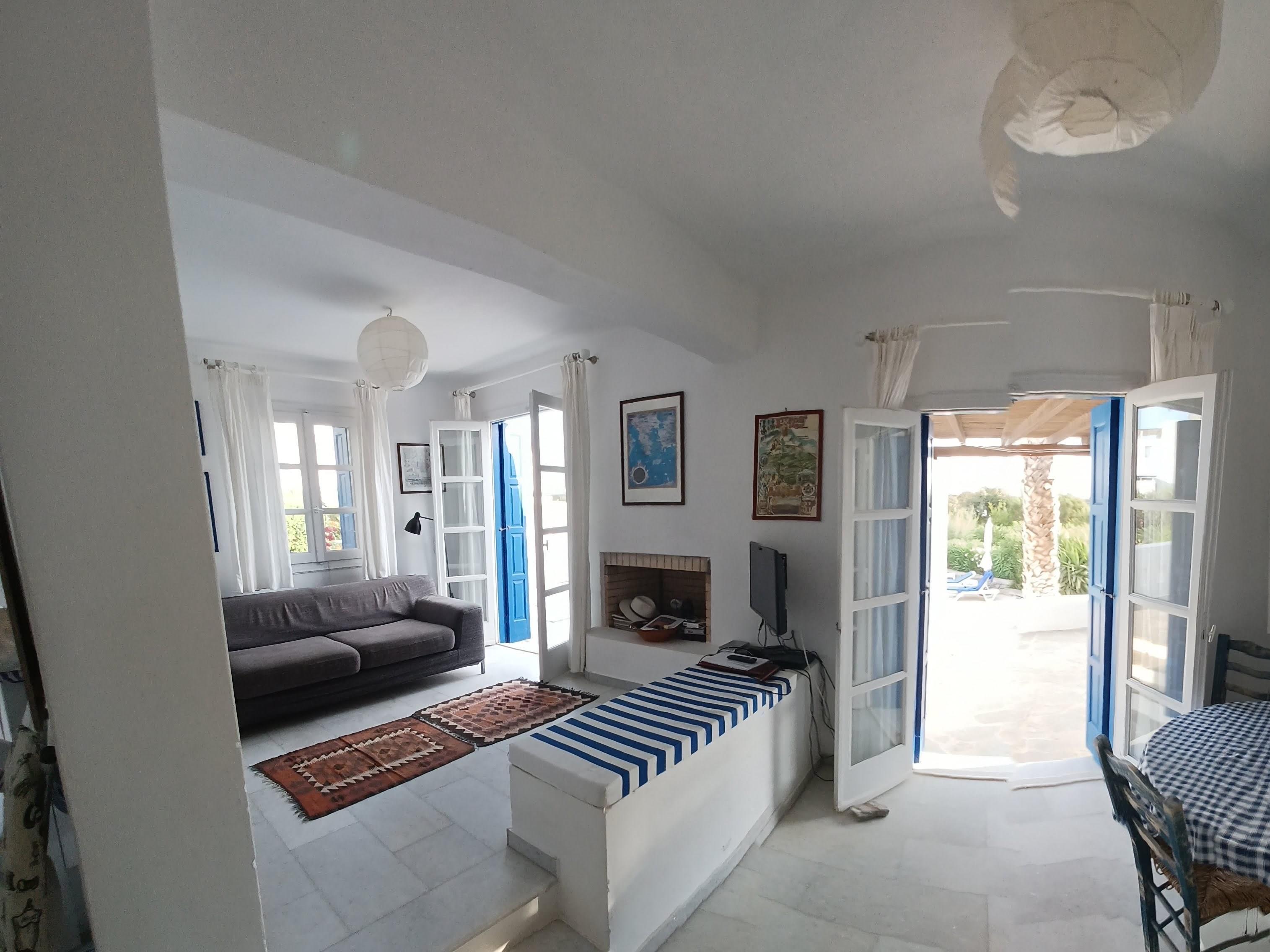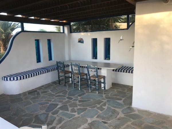 Glyfada Villa is situated 150 metres from a sandy beach and the sea. It is a 20 minute drive from the Airport/Port and Naxos town. It enjoys Seascapes to the Island of Paros from every East facing window and terrace.